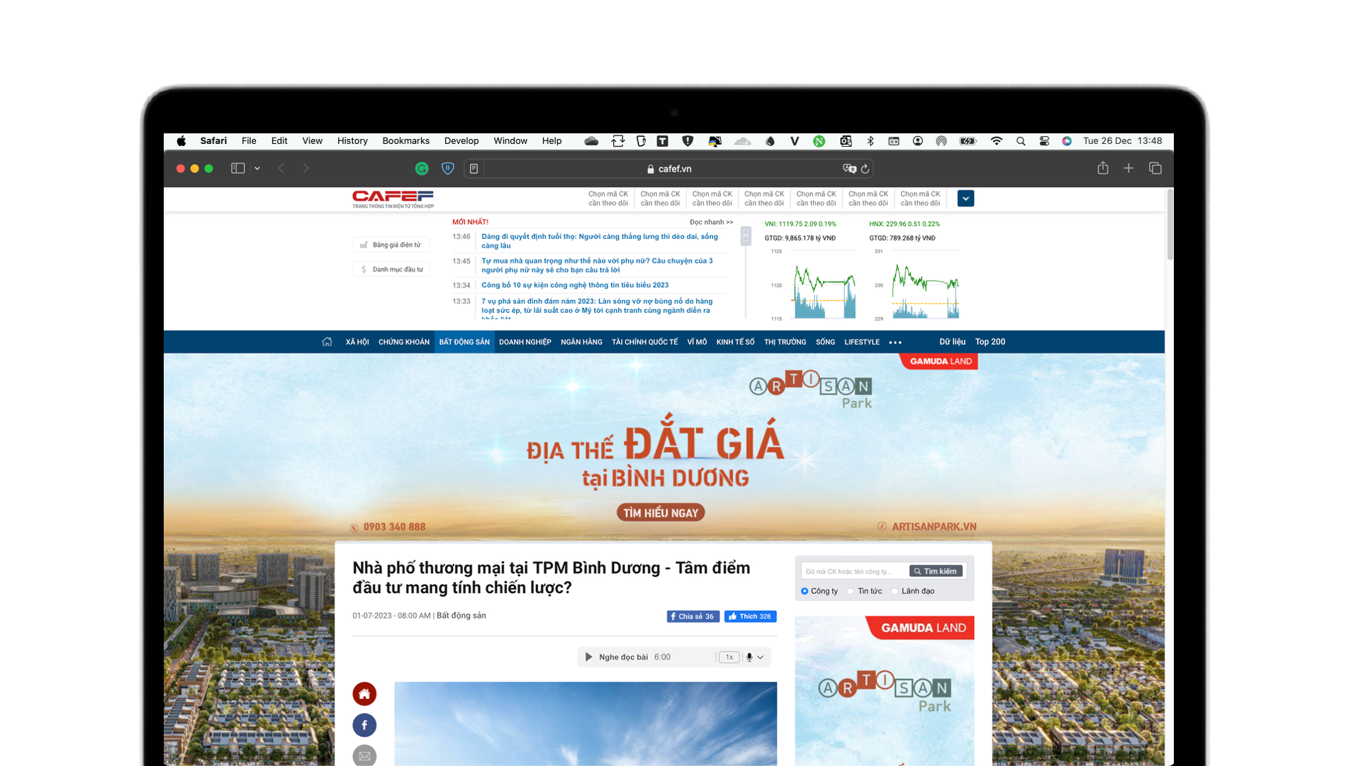 Quảng cáo hiển thị của một dự án bất động sản trên một bài viết PR của chính dự án đó trong giai đoạn booming, trên nền tảng Premium Adnetwork