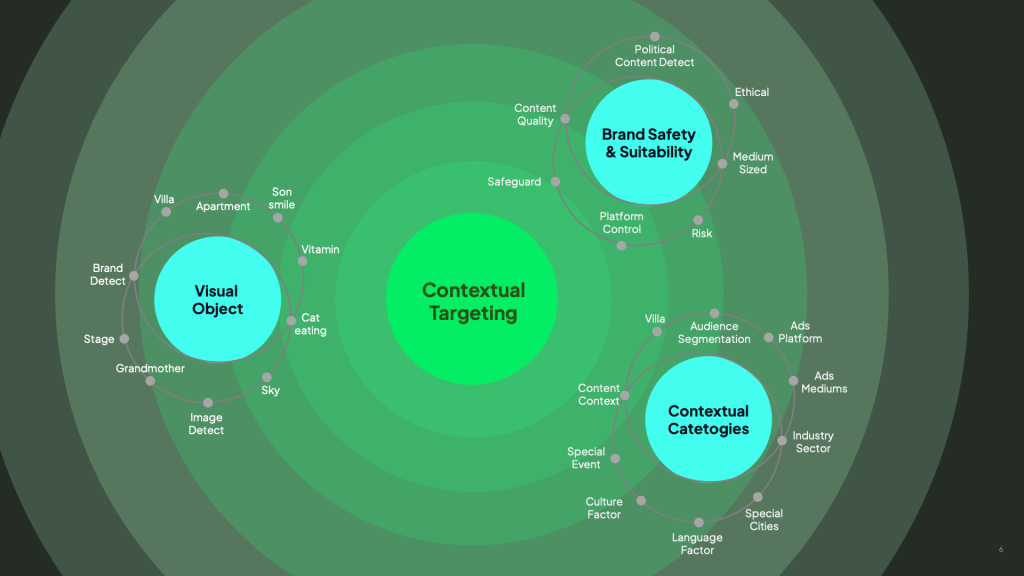 Contextual Targeting trên Premium Adnetwork là sự kết hợp phân tích hình ảnh (Visual Object Detection), phân loại ngữ cảnh nội dung (Contextual Categories) và lớp kiểm soát Brand Safety & Suitability để phân phối quảng cáo chính xác trong môi trường không Cookie. Nguồn: admeX